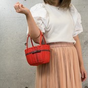 赤いバッグに、ブラウンラインのリボンがポイントになっています。